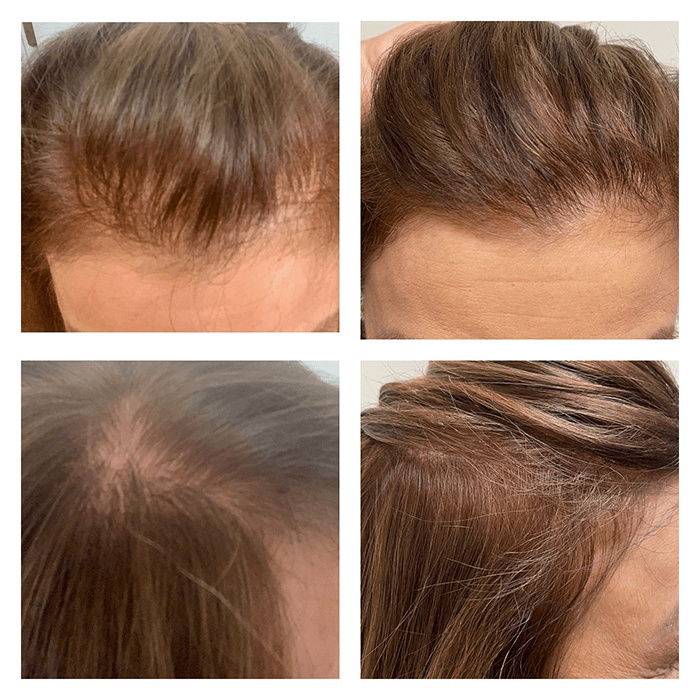 The first results begin showing up from two to three months after your first treatment. At first, most patients will see less shedding, and then patients will notice hair regrowth and thicker, longer hair.